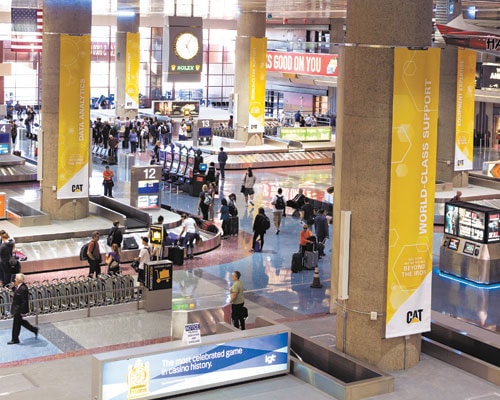 Caterpillar signs and banners at the McCarran International Airport in 2016. Photo courtesy of Exhibitor magazine .