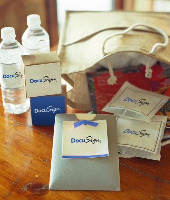 A hotel room drop package created by DocuSign. Photo courtesy of VIP Outdoor Media .