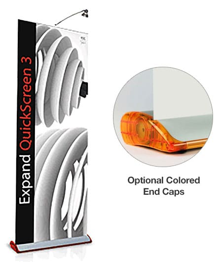 Accent your brand's color palette by adding brightly colored end caps to the QuickScreen 3 .