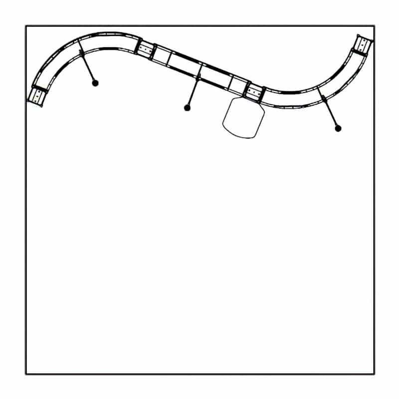 The 10 x 10 High Tech Display-Sausalito EZ Truss tradeshow exhibit will draw every trade show attendee's eye. With its attractive wave-like shape, everyone will want to stop by to take a look. You can also increase your display size by adding more pieces and the display pieces are reconfigurable.