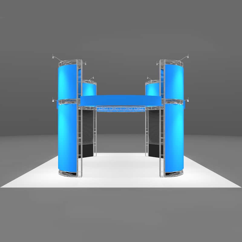 The Presidio 20 x 20 High Tech Display is a tool-less system with high perimeter signage and includes slat wall panels perfect for displaying products. This 20 x 20 High Tech Display Presidio Kit is a trendy truss display design and will quickly get you noticed without spending a fortune!