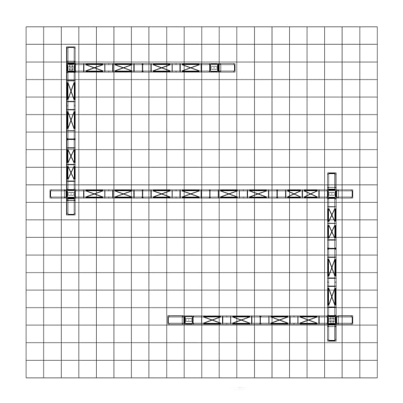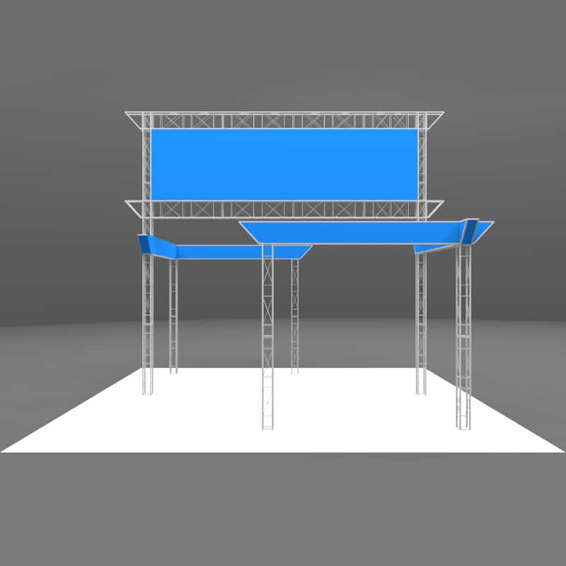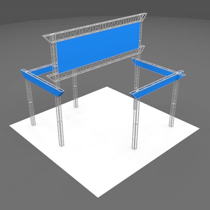 The Covina 20 x 20 Metal Display Kit has (6) 12' upper beams with pointed ends to create an open display with lots of overhead signage. Add the workstations and counters to complete the exhibit! Covina 20 x 20 Metal Display sets up without needing any tools. This modular display is reconfigurable and grows with your changing needs.