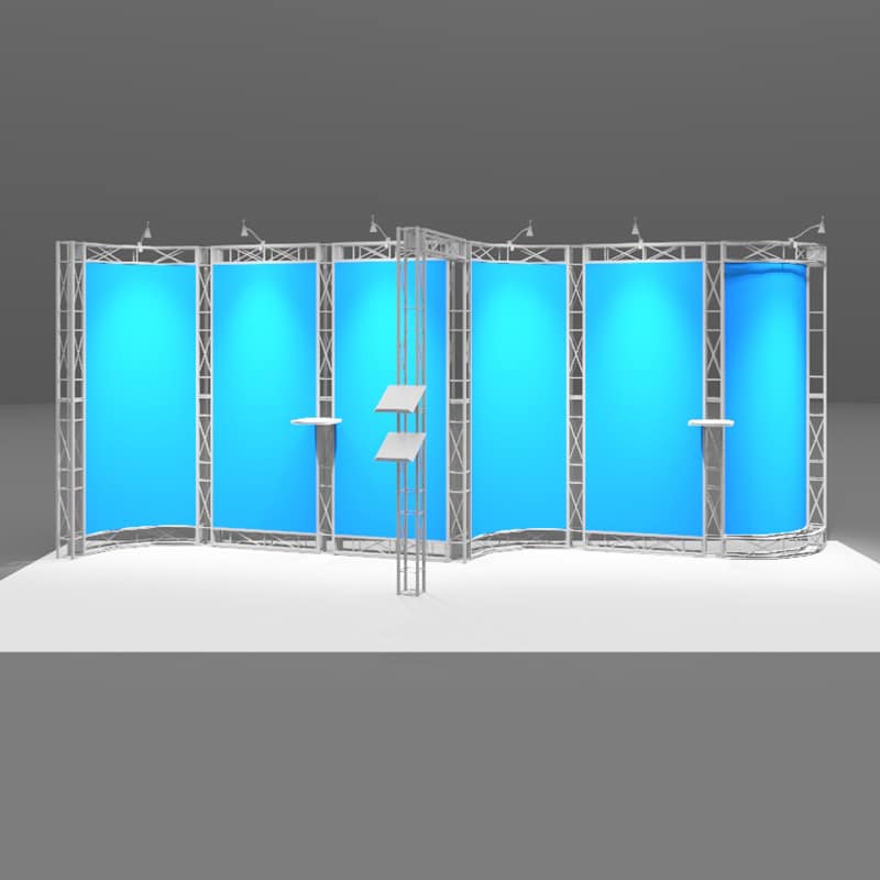 20 x 8 High Tech Display Napa EZ6 is a tool-less truss display system designed to set up 45-60 minutes. Easily separate product or service categories at your next show with the two-section design of this display. Like any of our truss systems, the 20 x 8 High Tech Display Napa adjusts by adding or taking away pieces as your needs change.