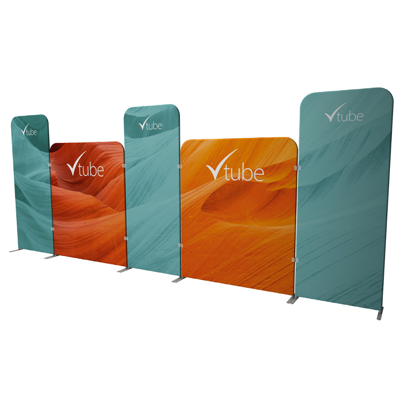 Make your booth impossible to miss with the 20' VTube Kit A. Designed for double-sided visibility, this tube frame display features vivid dye-sub graphics that stretch smoothly over a lightweight aluminum frame. Set up is fast and tool-free, and swivel feet let you join displays at various angles. It’s everything you need to create a high-impact, portable backdrop. Single-sided available by request. Ask us about hard case options.