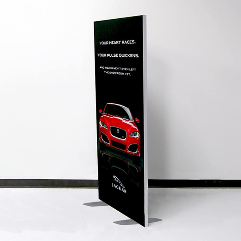 Insert the graphic edge into the groove on the frame to create a taut, flat display with finished corners. The 3 x 6 Fabric Display Nouveau system is a free-standing display for events or can be wall-mounted for office and retail environments. Add an Aviator Shipping Case for storage and easy transporting.