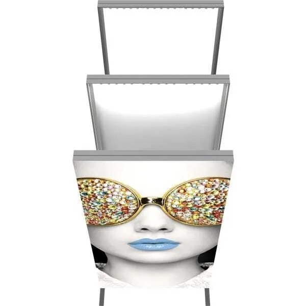 This 4 x 8 Double Light-Wall Display Vector Frame offers light wall visibility from multiple angles. Because the Vector Frame Backlit Rectangle 04 banner is a light up display, it attracts attention quickly compared to the other banners in the area.