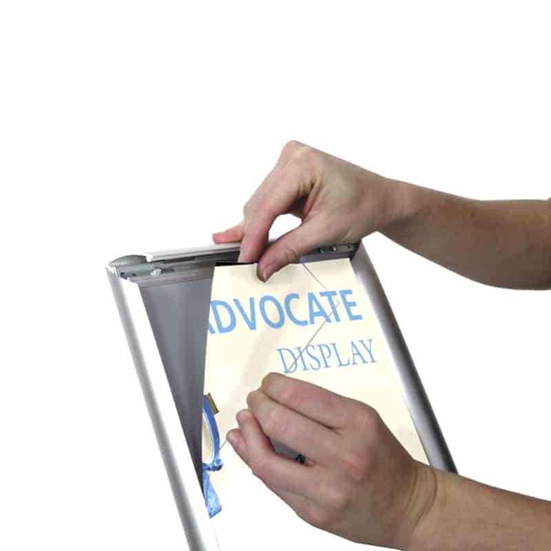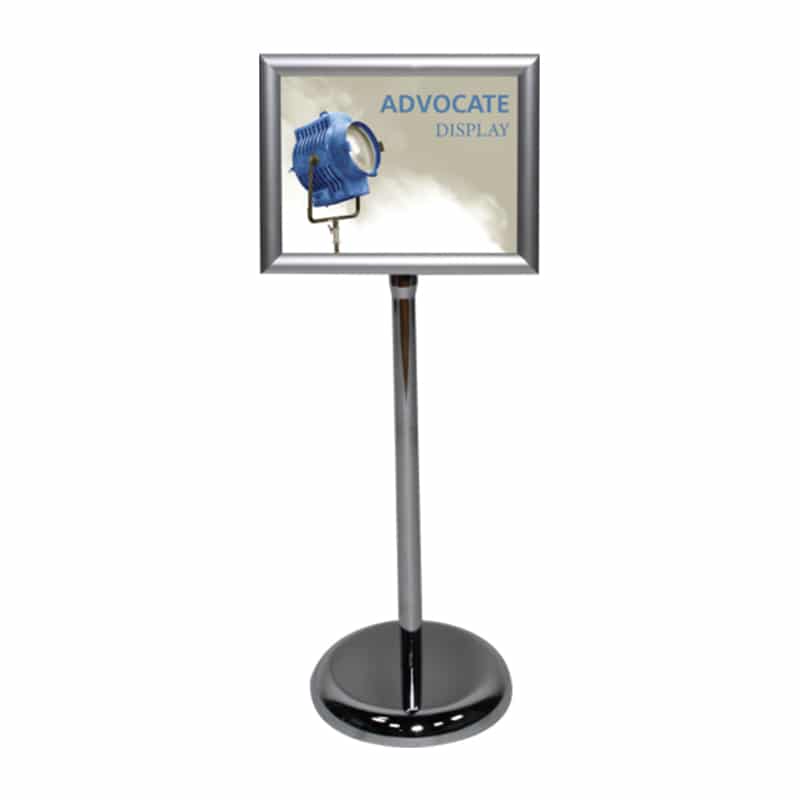 Display your graphic or message with our lightweight Adjustable Sign, the AdvocateEasy-to-assemble with a telescopic post and circular base. Your graphic branded message is displayed in the snap-edge frame in portrait or landscape configurations. The Adjustable Sign rotates 360 or positions at any desired angle.