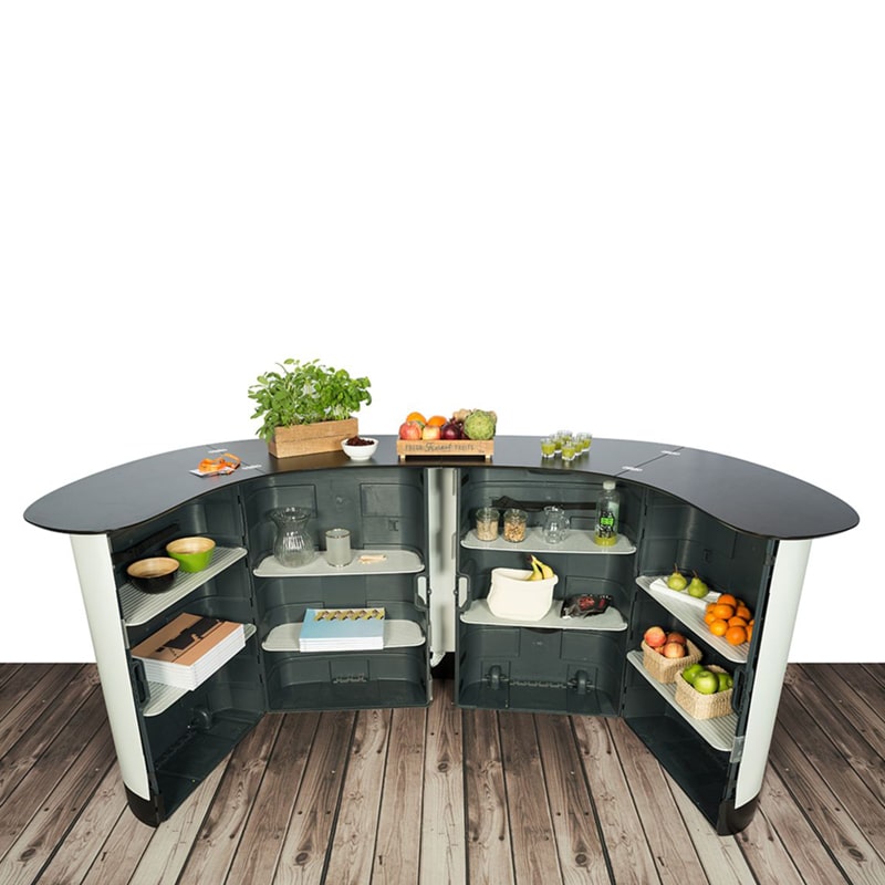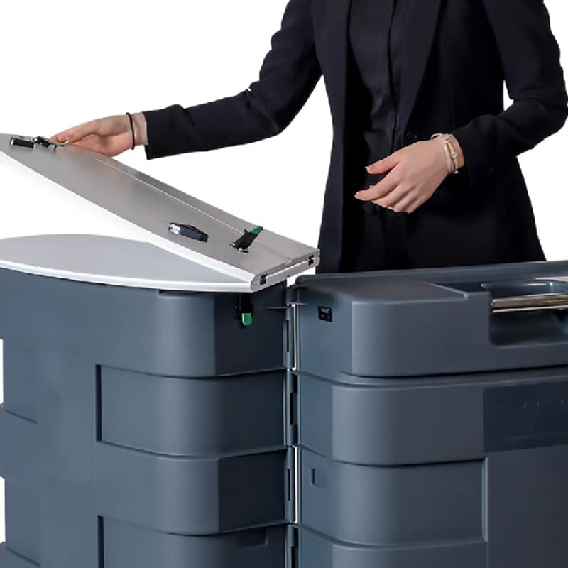 The Case to Counter Conversion X-Large Podium Case is a super spacious counter created from two transport cases that convert into a presentation podium. This extra-large Case to Counter Conversion Podium Case counter kit is perfect for product demos or food and beverage sampling at events and also works great as a serving bar. These two cases turn into a counter by merely opening the cases and attaching the extra-large countertop, shelves, and graphic wrap.