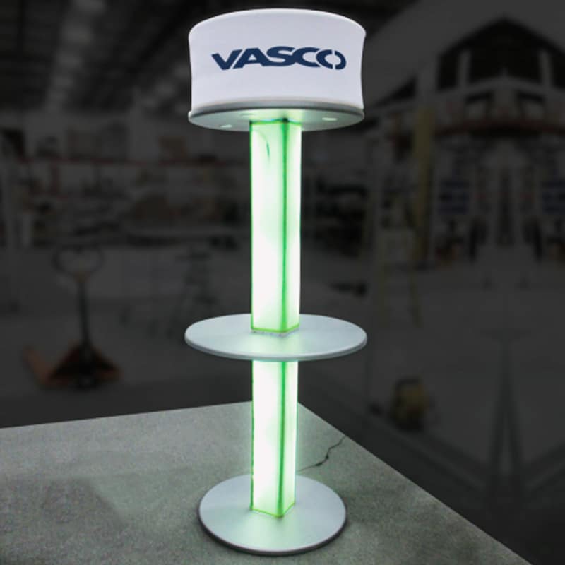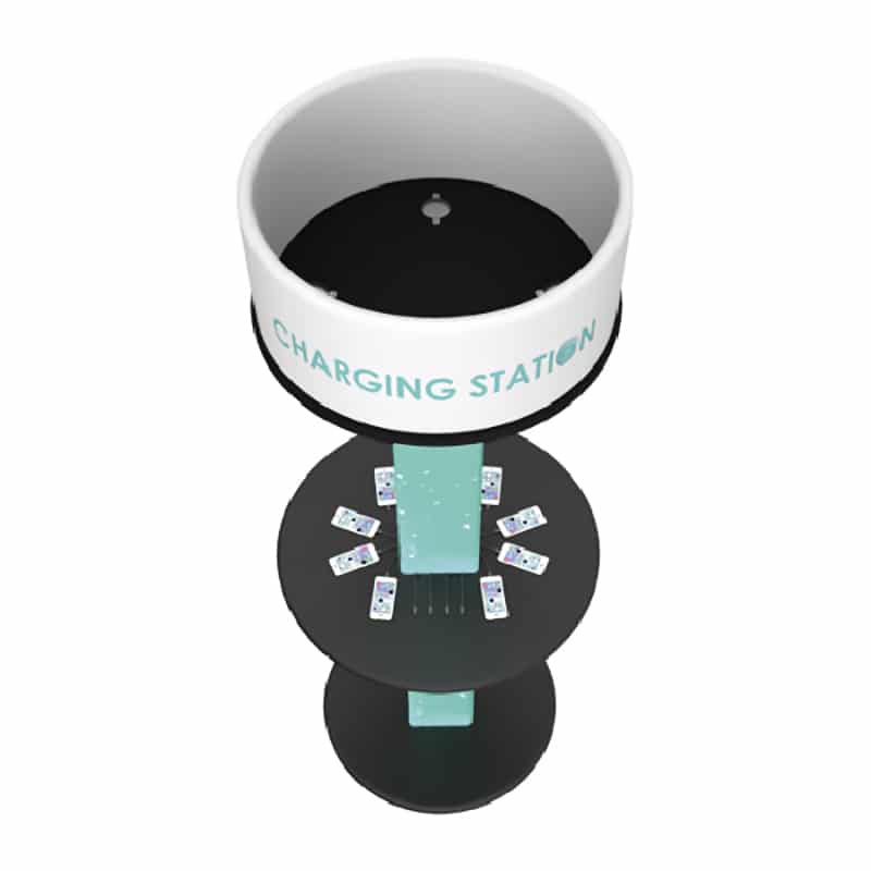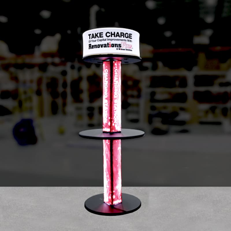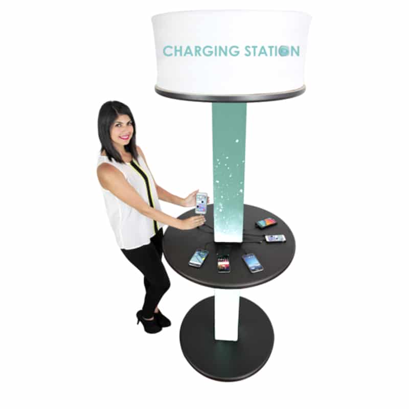 Our lightweight Charging Tower with Apple and Android USB Ports adds both technology and great value for visitors in need of a quick charge. The charging tower has 16 charging tips: (8) Apple and (8) Android. The light-up station includes a zippered backlit fabric graphic and thermoform countertop with a support base. This Charging Tower is excellent for showroom lobbies, retail applications, events, and trade shows.
