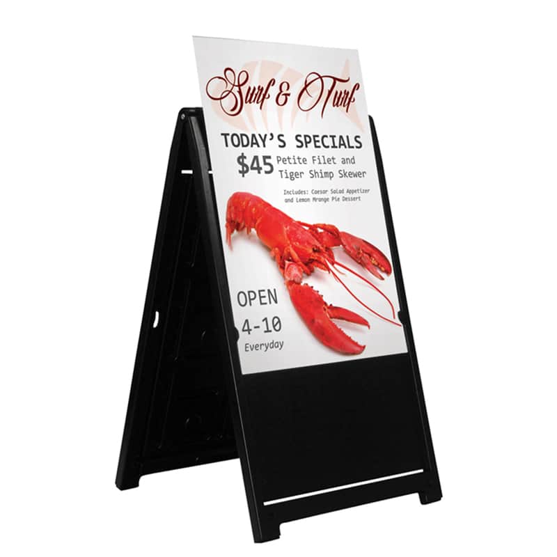 - Tabs on the frame keep signboards securely in place