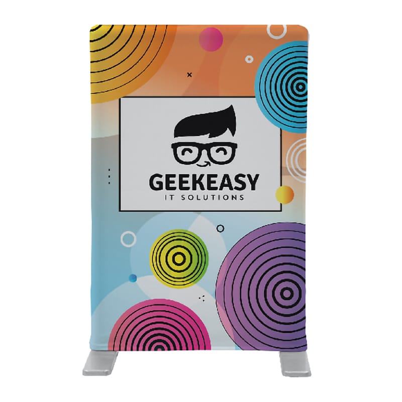 Our EuroFit Mini Banner display fits into small spaces, making it ideal for tabletop or countertop displays to complement your overall brand. This display is portable, lightweight, and a favored item among our customers that want something small, yet original and different. Use this EuroFit Mini Banner for brand visibility or as a new product or service promotion.