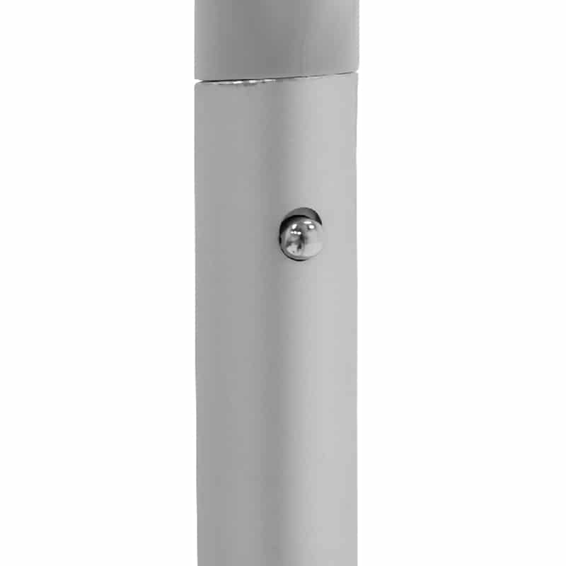 - The aluminum frame has push-button connections and square plastic corners.
