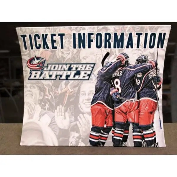 Easy, one-person assembly makes setup easy. Just snap the tube frames together, pull your pillowcase graphic panel down over the edge, zip it up, and you're all set! Packs in a portable shipping case that ships UPS and FedEx.