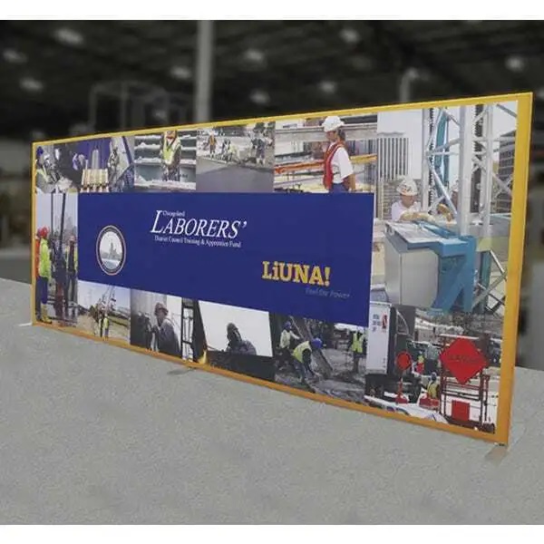 The 20ft Straight Backwall is large and in charge and is perfect for the island or peninsula exhibit booth spaces. It is lightweight, portable, quick to set up, and easy to transport. The dye-sub printed graphic is wrinkle-resistant, machine washable, and durable.