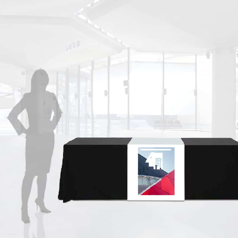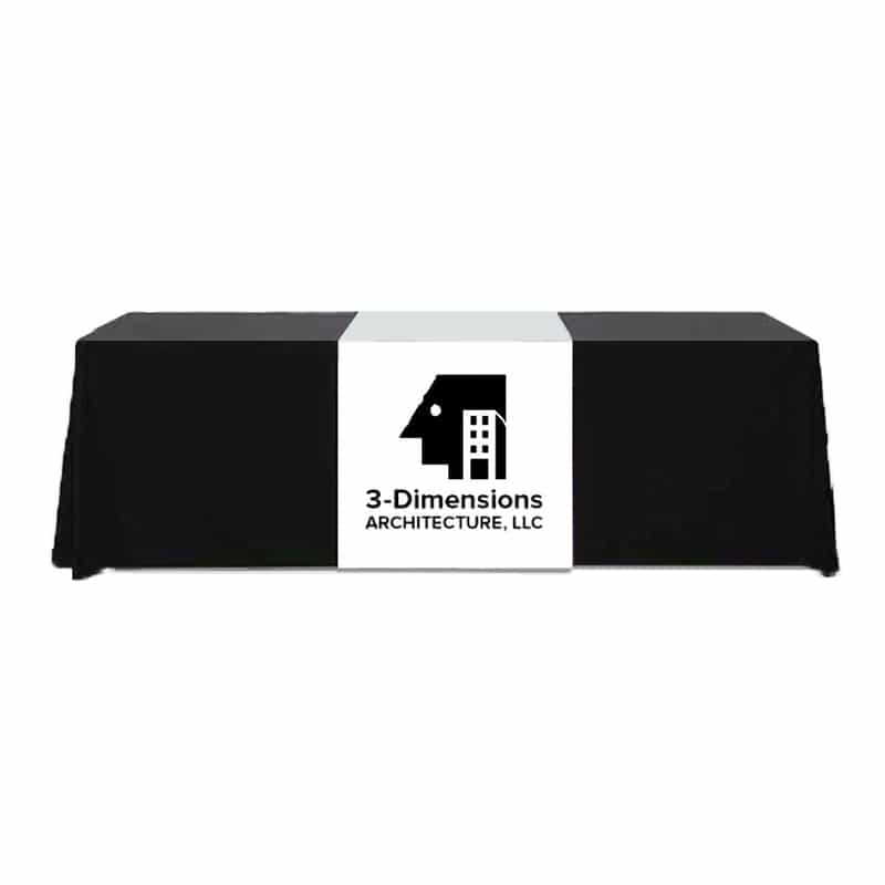 Fully Printed Table Runner offered options for either a high-quality dye-sublimation graphic or heat transfer vinyl application that's perfect for companies with multiple messages or departments. Simply lay the fabric over your plain table throw, and you have instant branding!