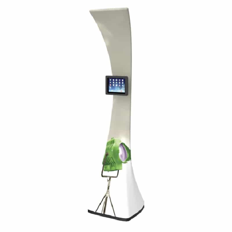 The iPad Media Stand 02 is a sleekly designed freestanding tablet holder that can encourage interactivity, engage customers, and present information in any space. With a sturdy tube aluminum frame, weighted base for stability, and a pillowcase fabric graphic, this iPad Media Stand 02 has an original look.
