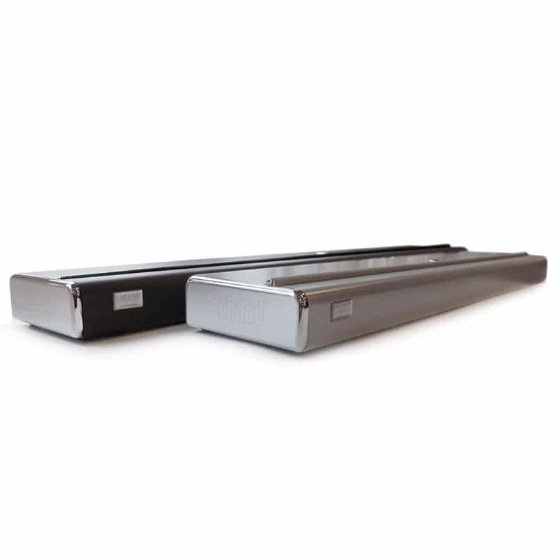 - Available in black or silver with chrome ends