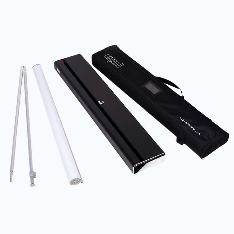 - Telescoping pole allows for adjustable height graphic, can be used on a table