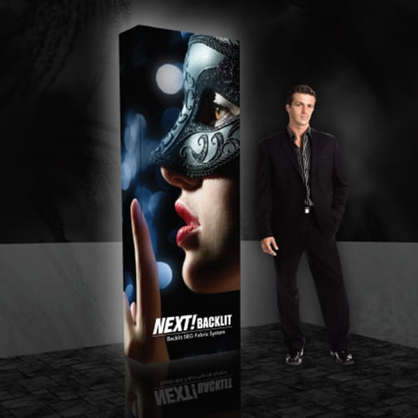 Take advantage of the 3' Backlit Display NEXT! Radiance Light up SEG fabric and design your own custom-branded backlit walk-around tower.