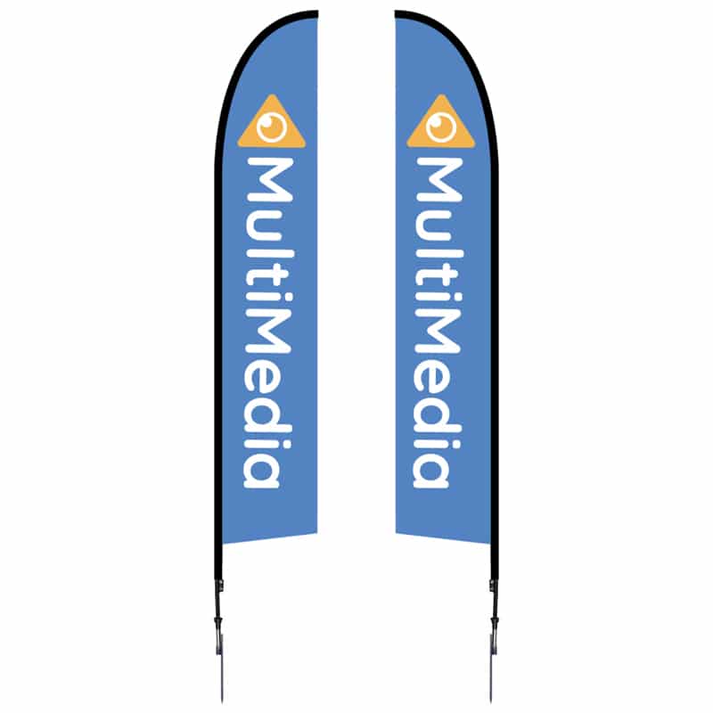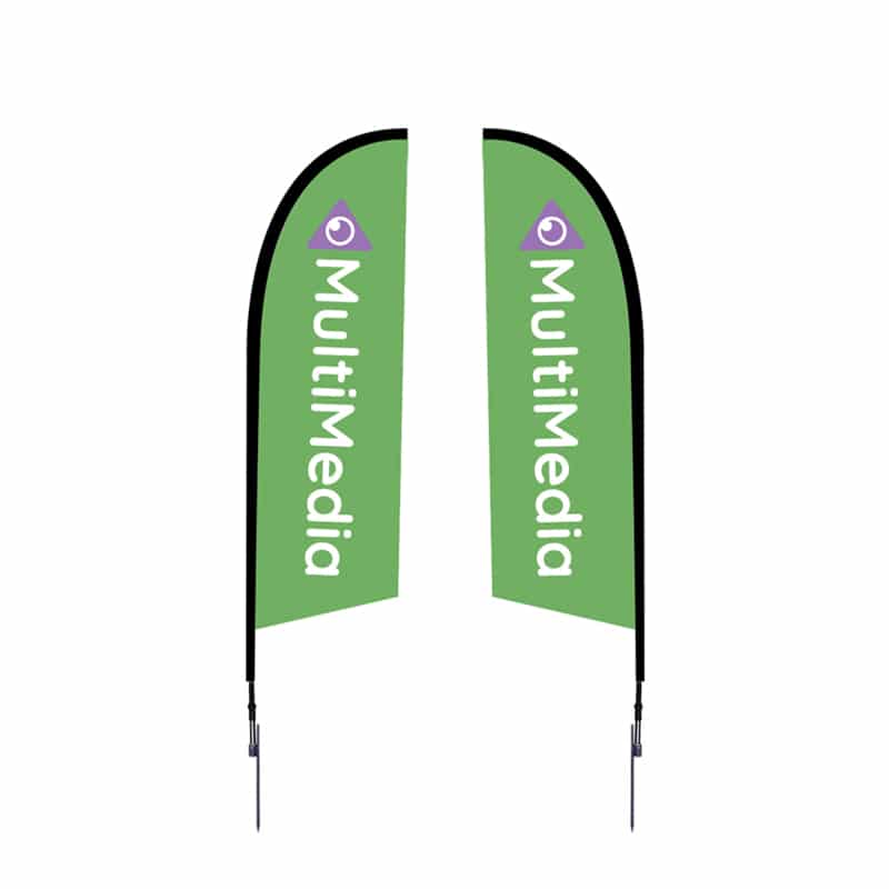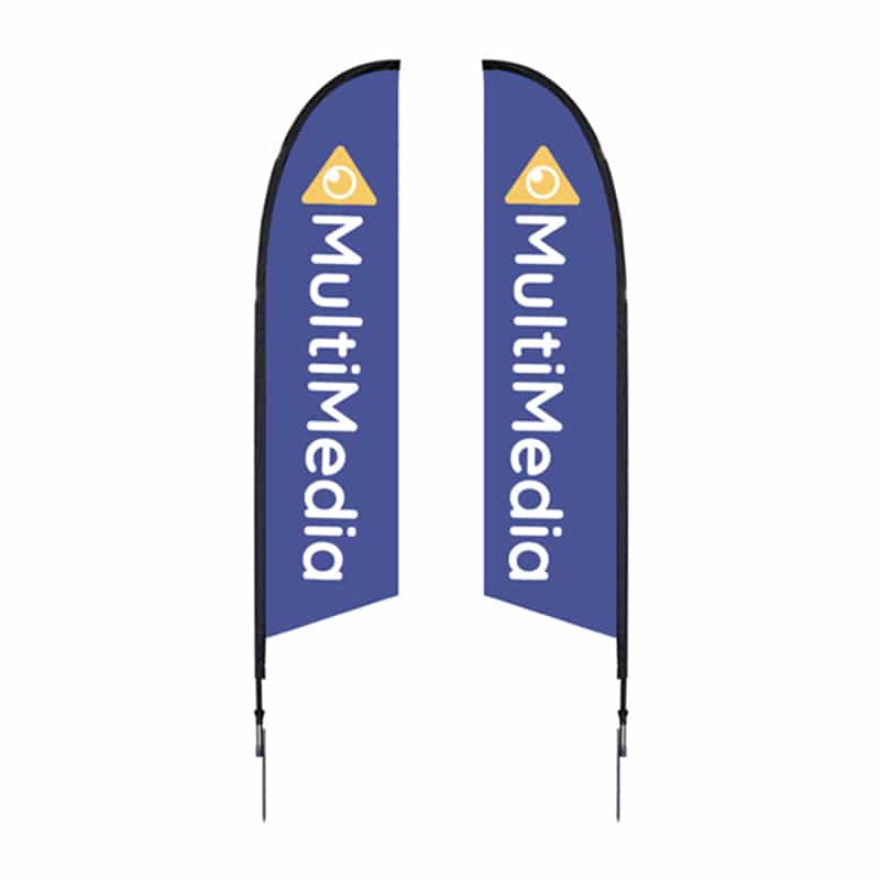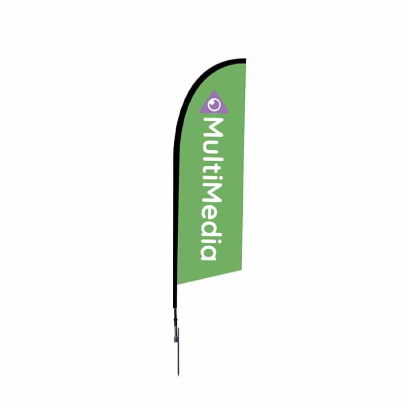 Our Outdoor Falcon Flag comes with a customized dye-sub printed graphic on a polyester mesh material. Options include single-sided or double-sided dye-sub graphics available in a variety of sizes. You can also choose for this Outdoor Falcon Flag either a spike leg (for outdoor use) or an X-base bottom (for indoor or outdoor use) to properly anchor your banner flag at your outdoor location.
