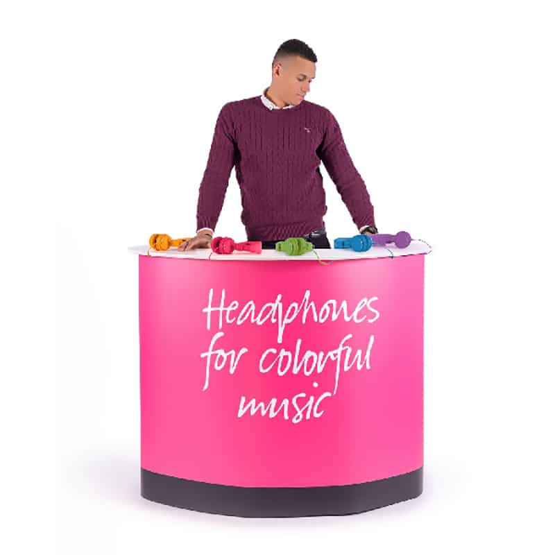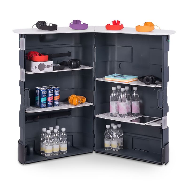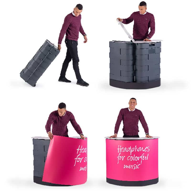 - The case can be converted into a podium counter kit by purchasing the accessories and graphic wrap.