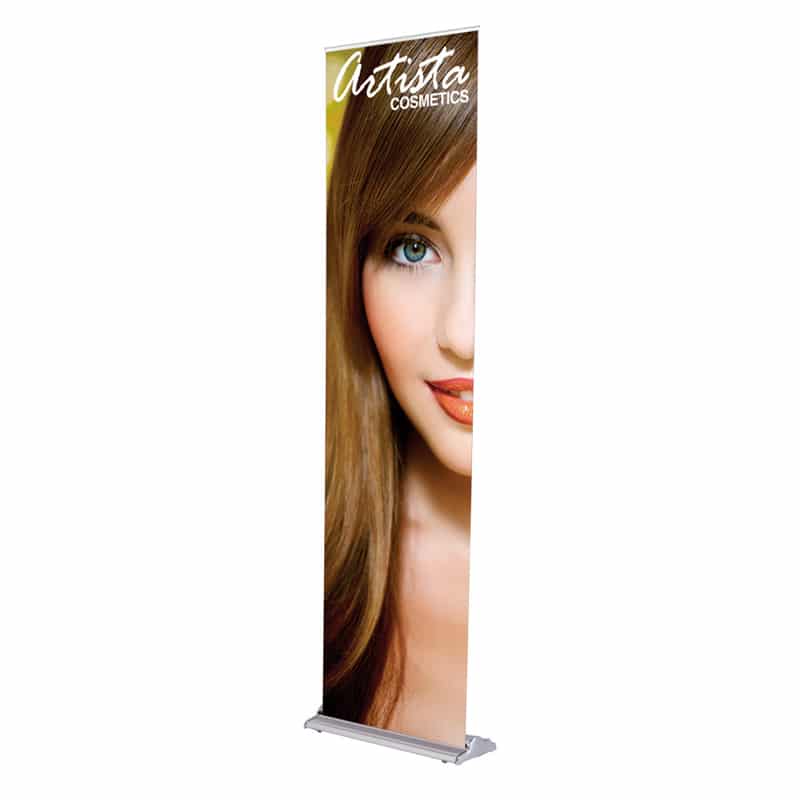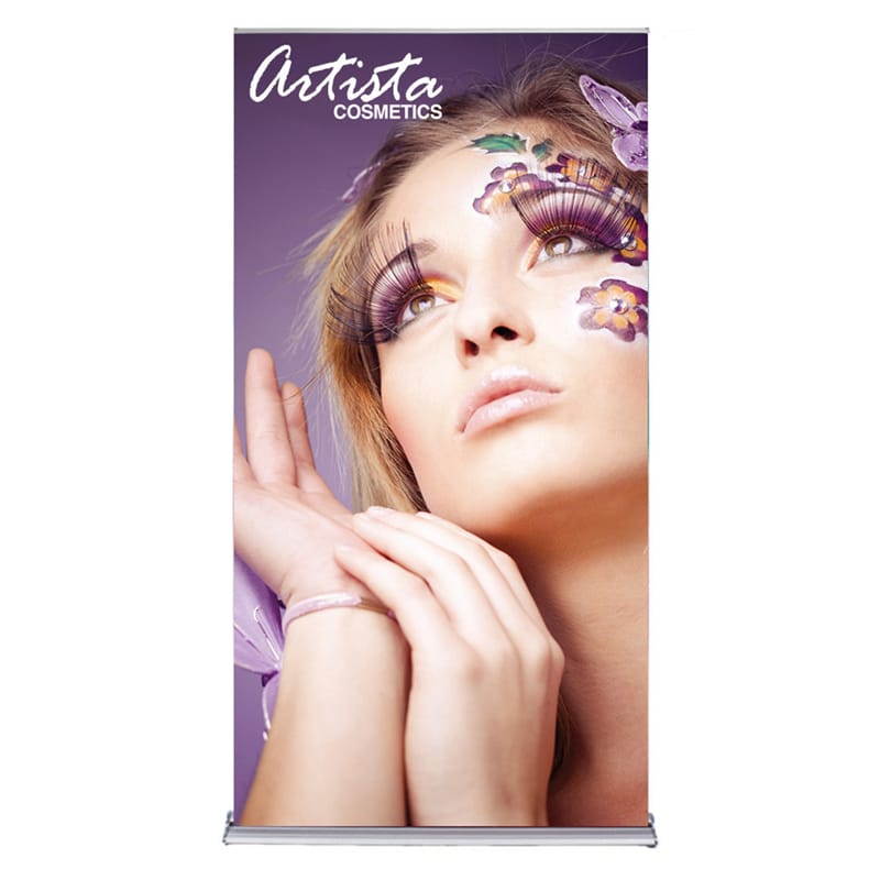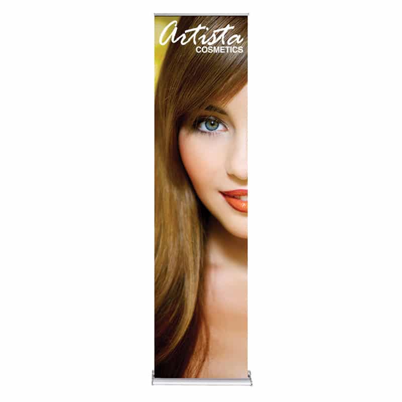 The Roll up Banner Silver Step is durable and uniquely designed with aluminum hardware that is the perfect combination of appeal, affordability, and versatility with a choice of four different size options. One of our most popular sale items is this Roll up Banner Silver Step due to its durability, sleek base, and ability to change the graphic yourself with a Velcro leader.
