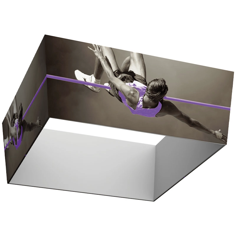 The Suspended Hanging Tapered Square Overhead Display Structure features an angled surface for maximum visibility on the show floor. The high quality dye-sublimated graphics are printed on tension fabric and slip around a lightweight snap-button frame. No tools needed to assemble. An OCE Hard Shipping Case is available for protecting your Suspended Hanging Tapered Square structure during shipping.