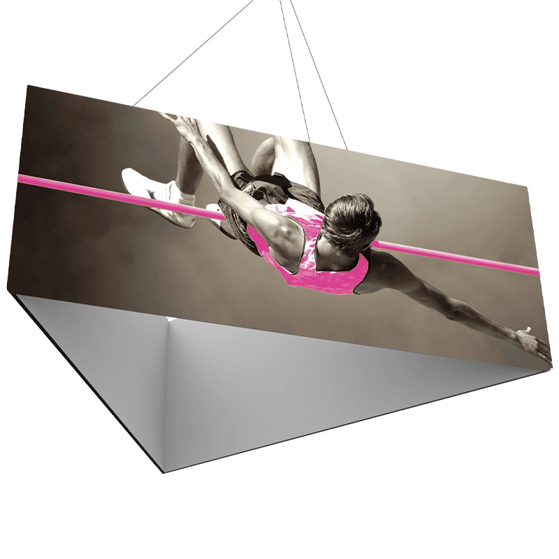 The Suspended Hanging Triangle Display Structure will attract attention to your booth from across the show floor! Our high quality dye-sublimated tension fabric graphic slips around a lightweight snap-button frame. Assembly is tool-free. An OCE Hard Shipping Case is available for protecting your Suspended Hanging Triangle Display structure during shipping.