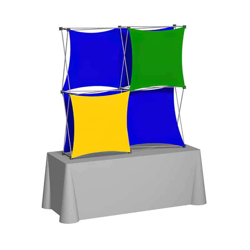 The X1x 2x2 Kit B fabric display is made in the US, sets up in mere seconds with no tools, and is perfect for on-the-go exhibitors. Graphics stay on the frame when setting up and taking down.