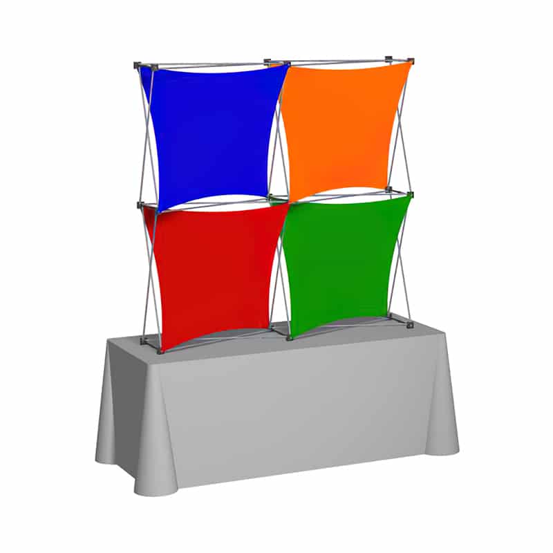 The X1x 2x2 Kit G US-made fabric display sets up in a snap and is perfect for multiple events. The versatility on this display will surprise and delight you. Change out one or two graphics, switch up the configuration, or add accessories for a new look! X1x 2x2 Kit G fabric graphics are completely machine washable and fire retardant with limited lifetime warranty on the frame.