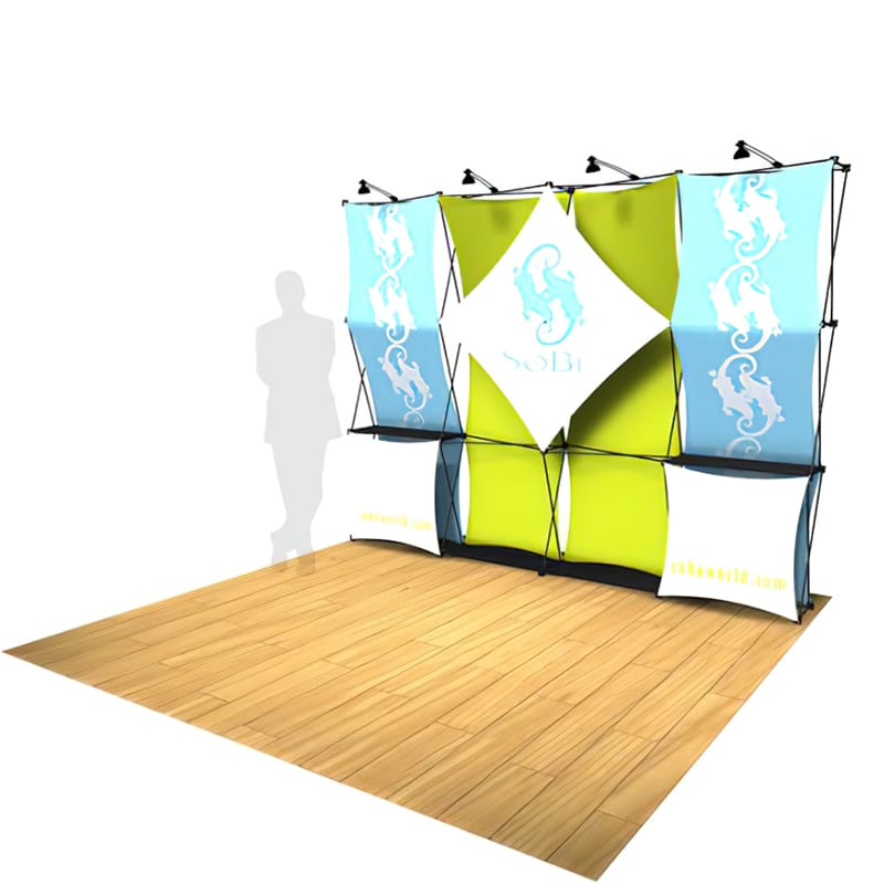 The X1x 4x3 Kit B lightweight pop up display sets up in seconds and is perfect for exhibits on-the-go. Easy to change out graphics quickly. Change up the configuration, or even add accessories for a unique look and feel for every show!